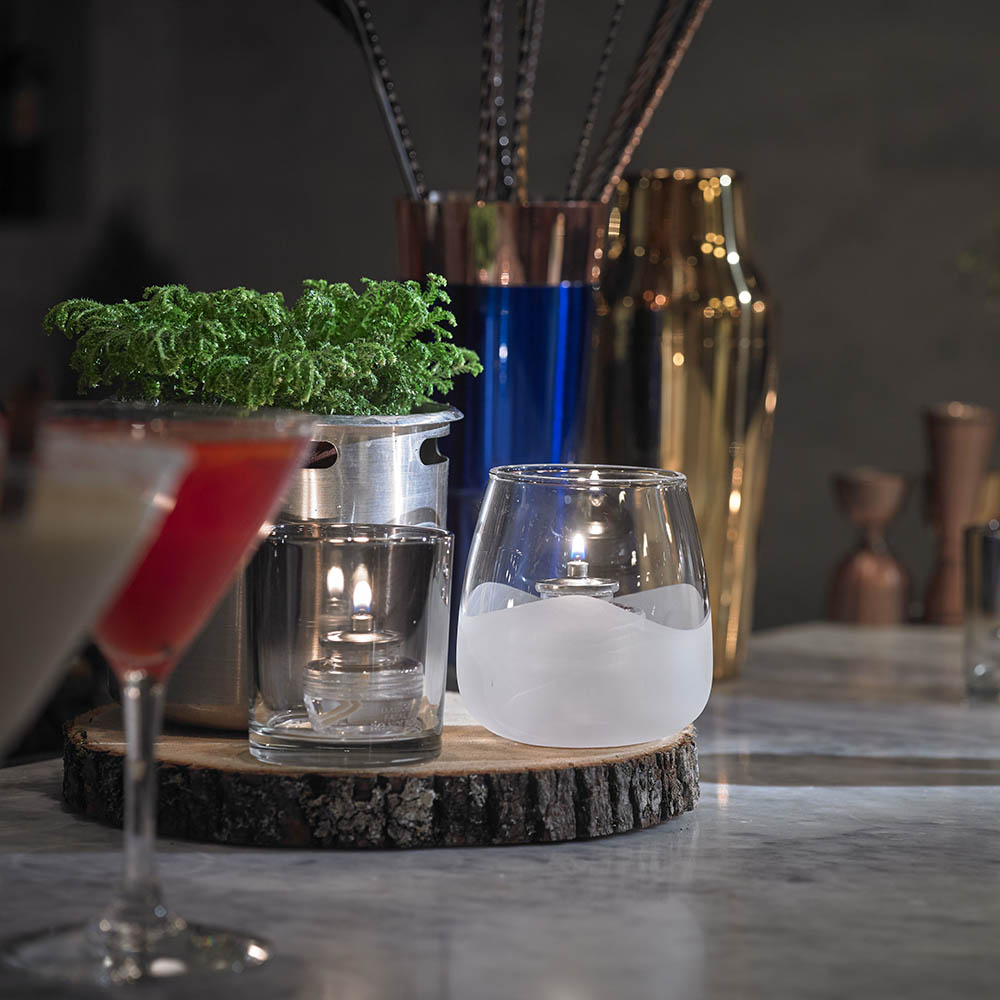 An oversized votive, inspired by nature and natural light to help create a calming and authentic-feeling atmosphere.