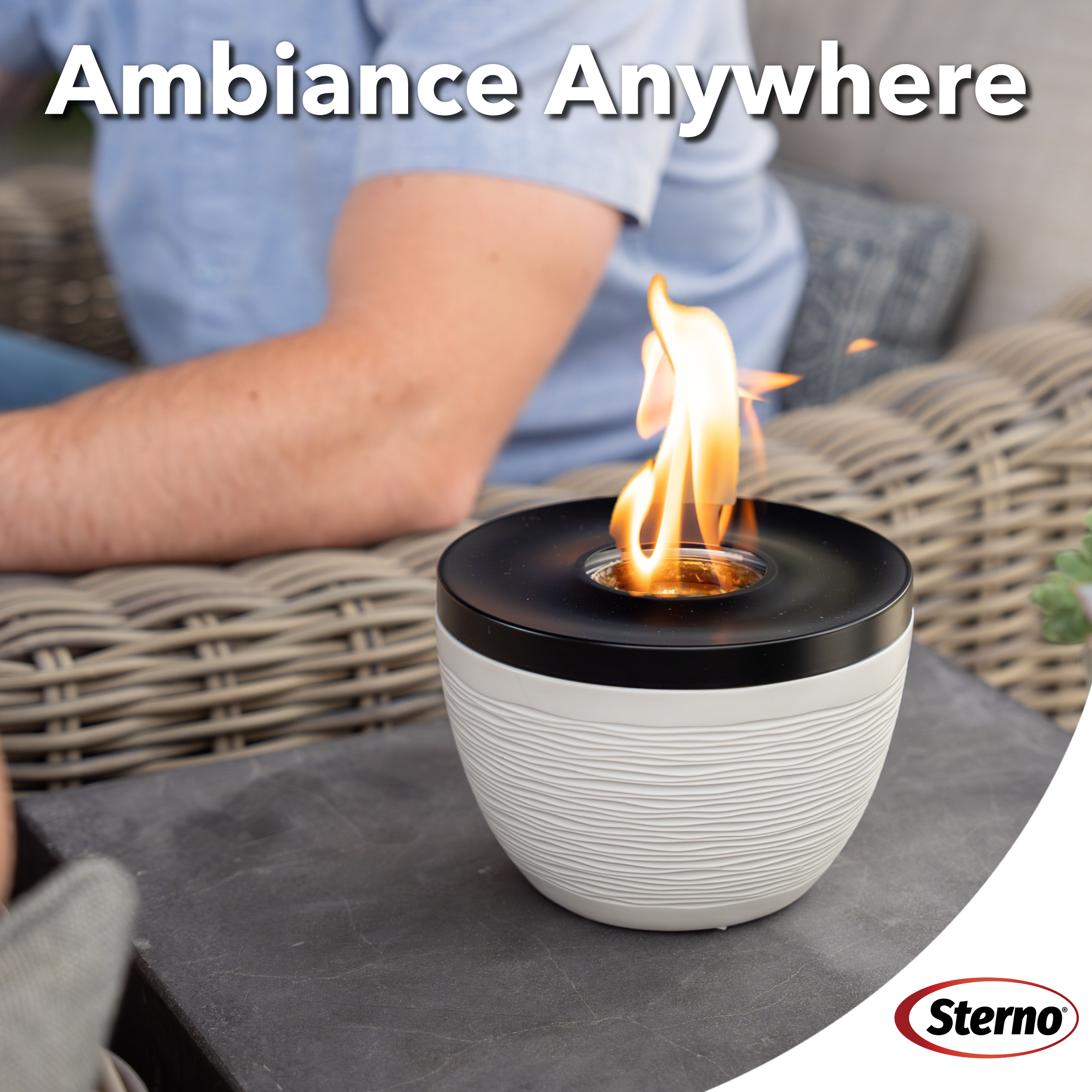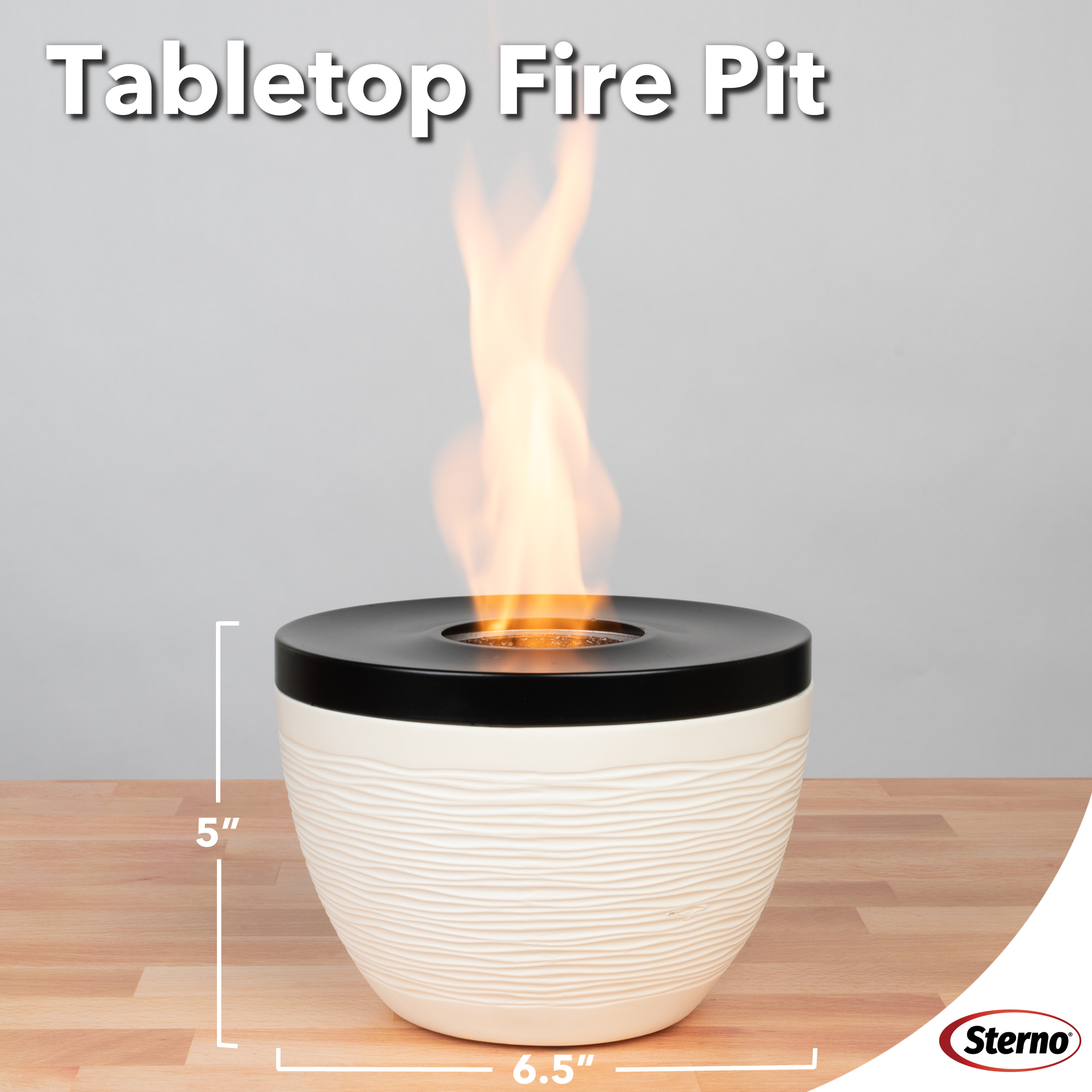 Sterno Small Tabletop Firepit with Firepit Gel Fuel, Onyx & Ivory, Round, 6.5" D x 5" H