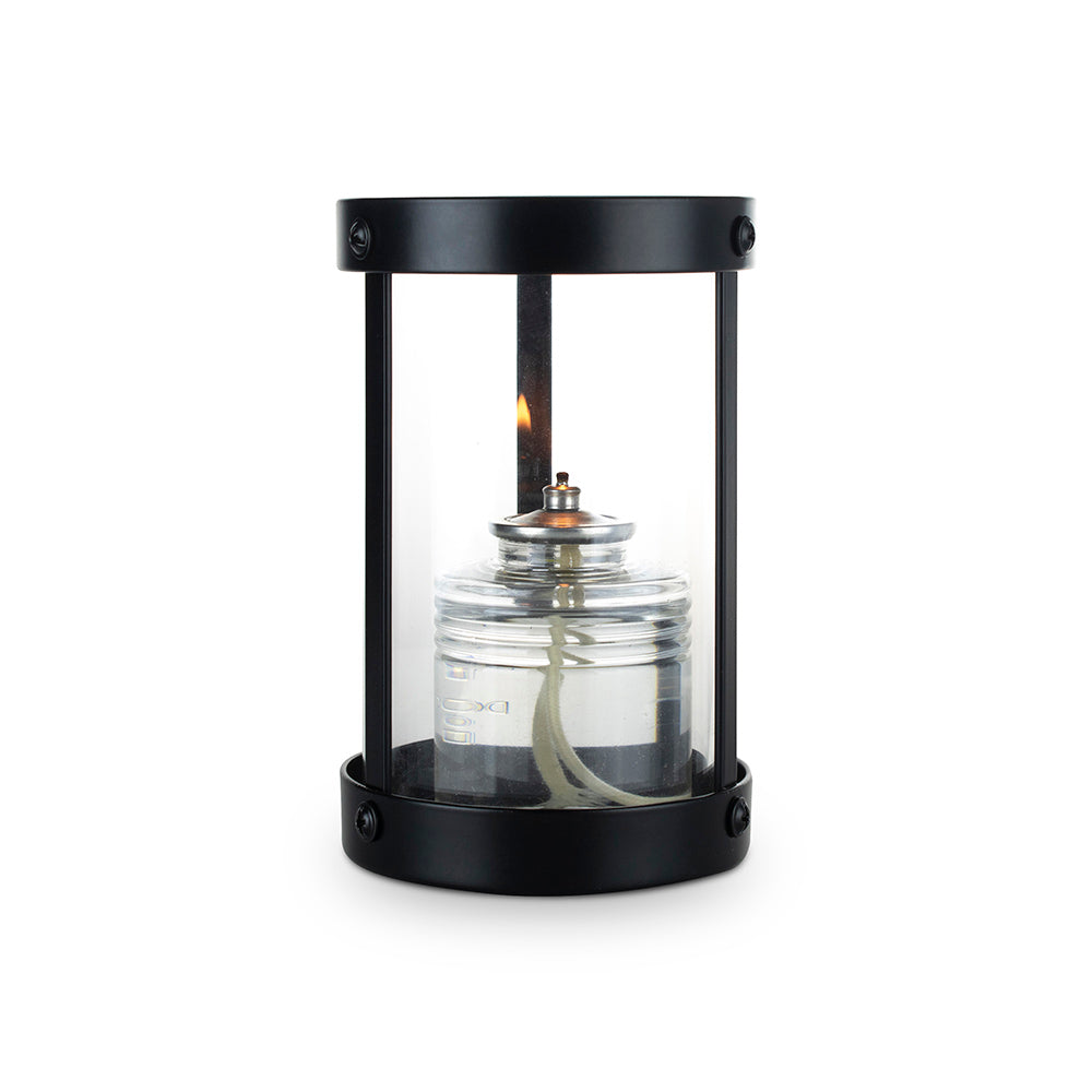 Penny combines a sturdy, metal base with a clear glass to offer a striking, modern-industrial look.