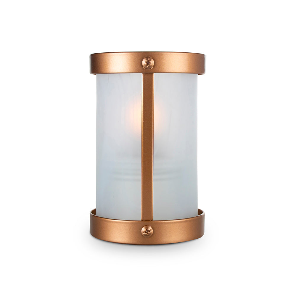 A sturdy metal base paired with a silky, frosted cylinder offers a softened industrial-look; ideal for contemporary, elegant spaces.