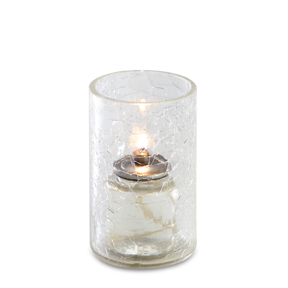 Simple glass votive with a clear, crackle finish.