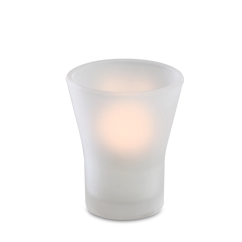 Simple and petite votive with a fluted, frost finish.