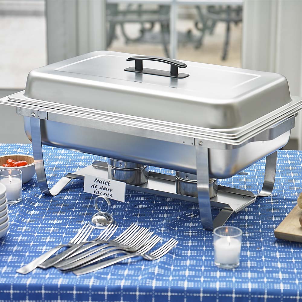Ideal for Holiday entertaining and special occasions, this foldable buffet chafer made from durable stainless steel looks great while keeping food hot.