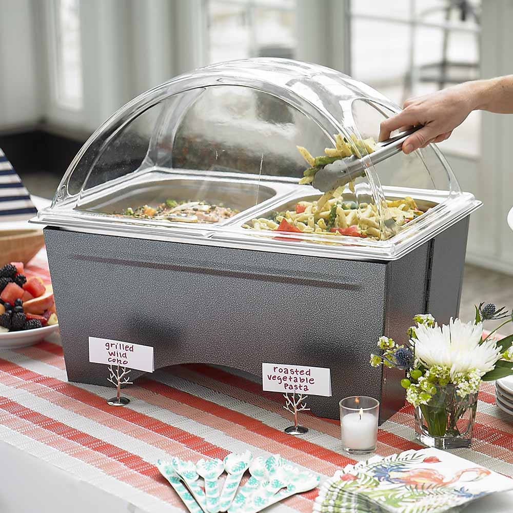 - Perfect solution for catering outdoors with a full panel design that keeps food hotter and keeps flame from blowing out.